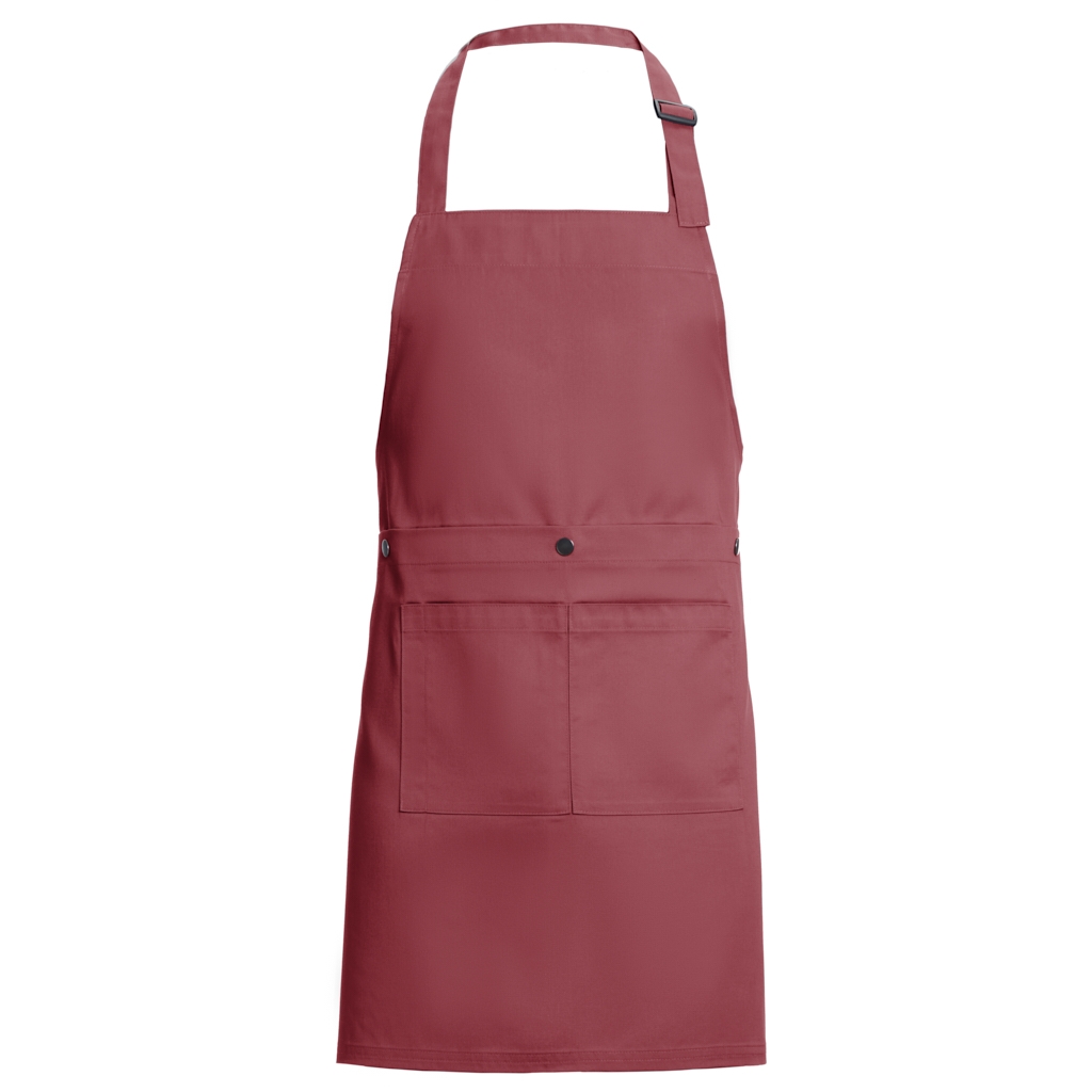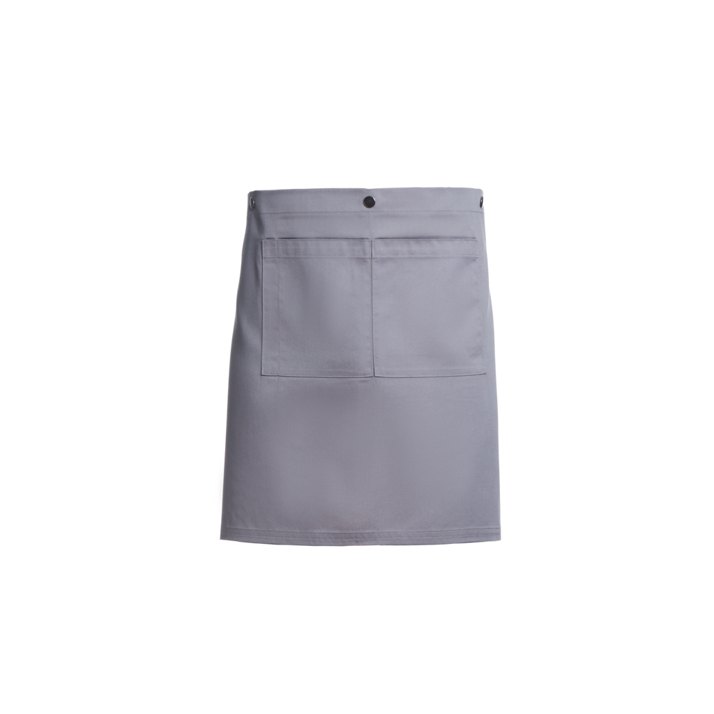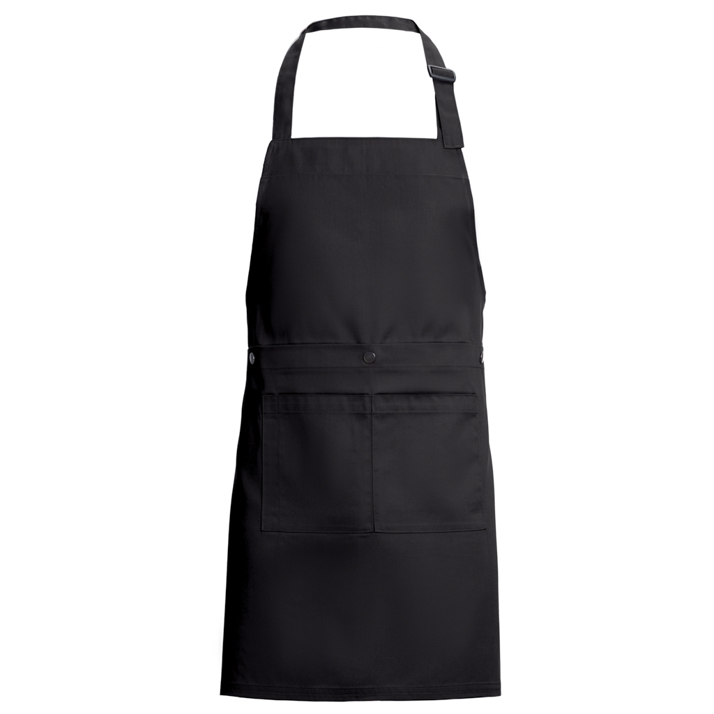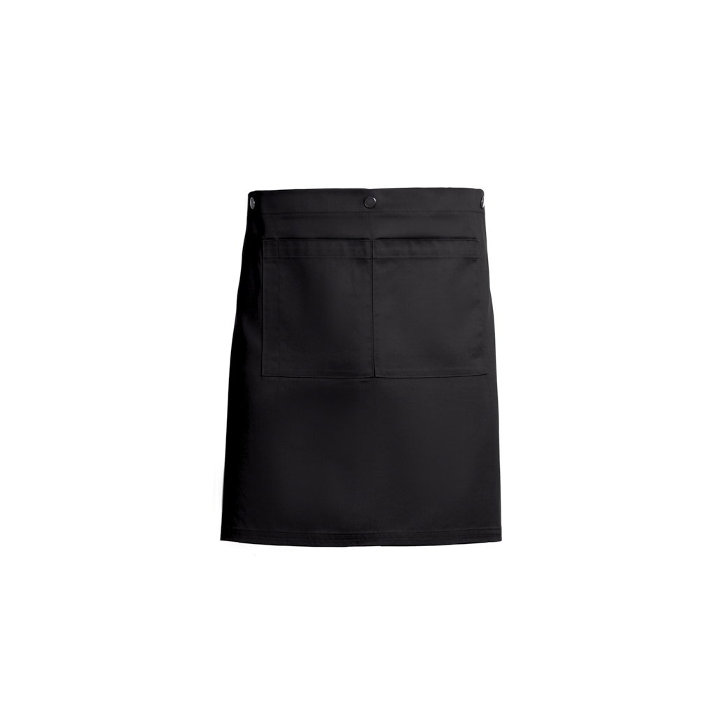 Com 2 bolsos e um encaixe de caneta na zona do bolso, 1 fivela ajustável e molas de pressão para converter o avental em avental de servir.
