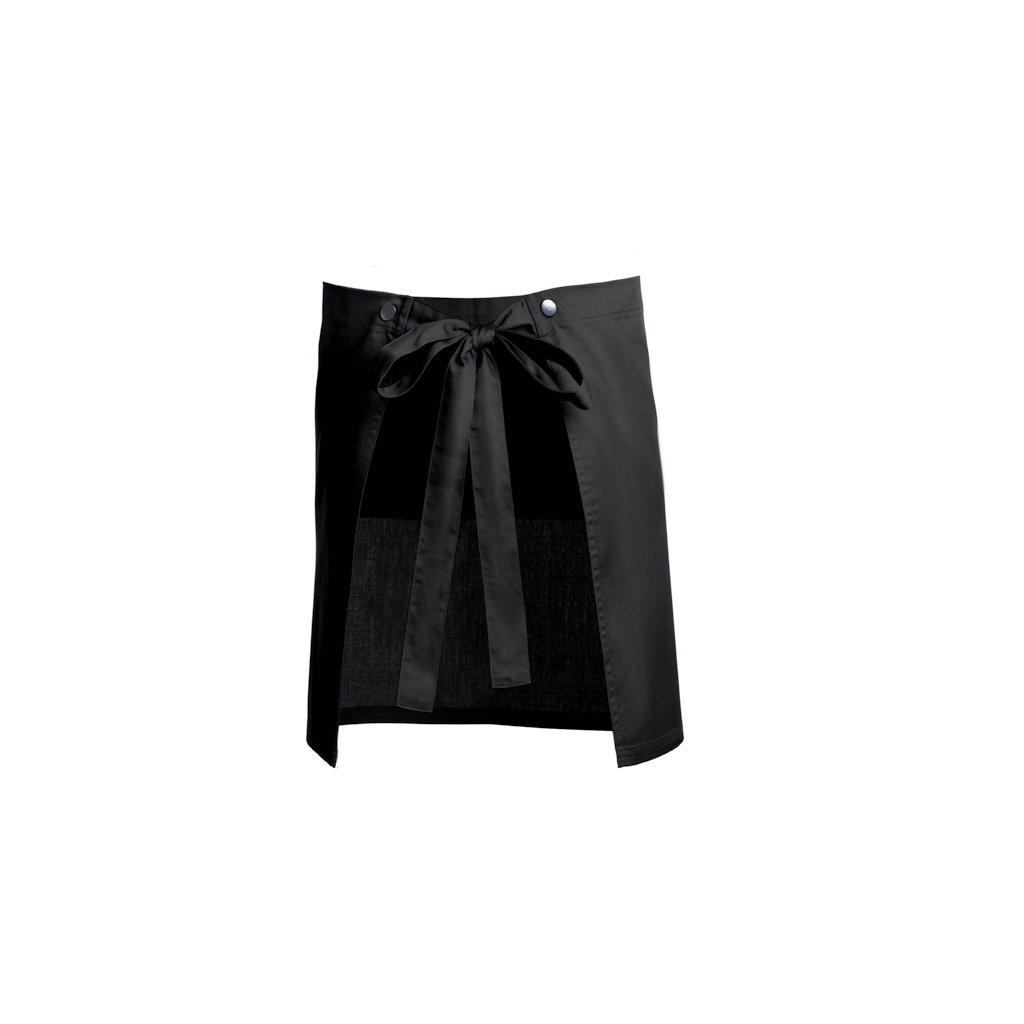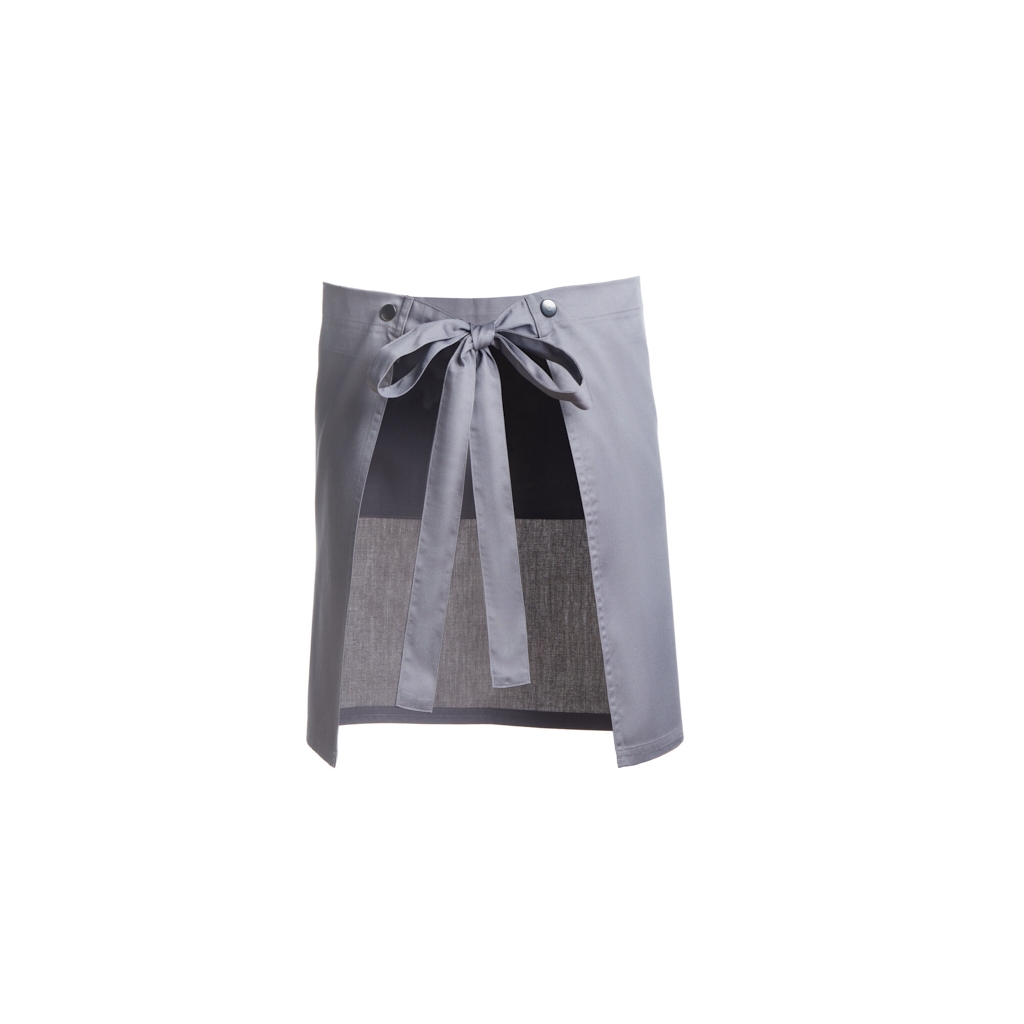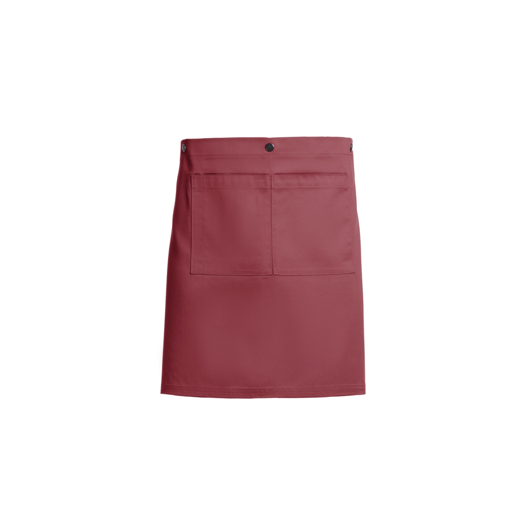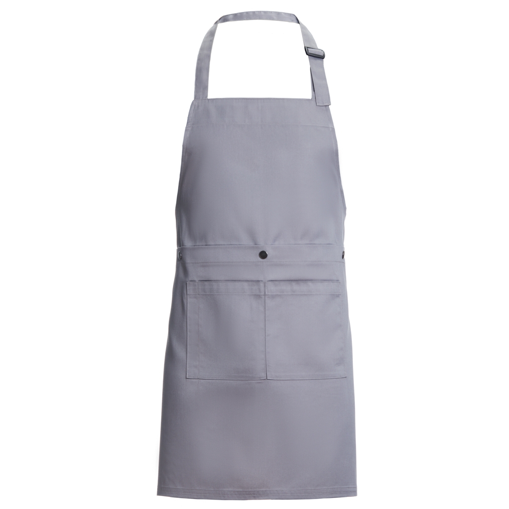 Com 2 bolsos e um encaixe de caneta na zona do bolso, 1 fivela ajustável e molas de pressão para converter o avental em avental de servir.