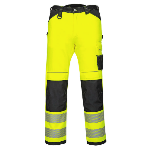 Calças elásticas de alta visibilidade para senhora em Kingsmill Polycotton Elastane Stretch, 65% Poliéster, 33% Algodão, 2% Elastano 245g e Tecido Oxford 600D 100% Poliéster.