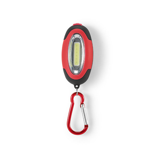 Lanterna. ABS. Com LED COB, mosquetão e íman. Inclui 2 pilhas CR2032. 35 x 74 x 24 mm