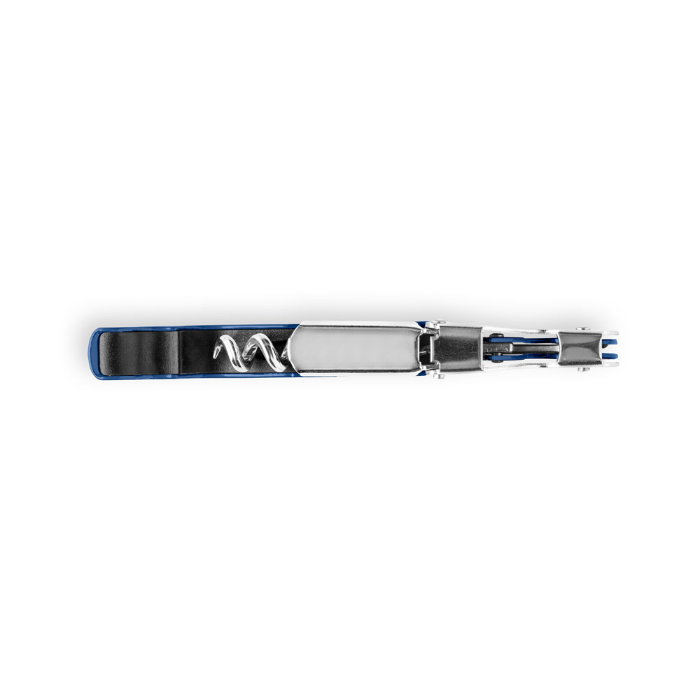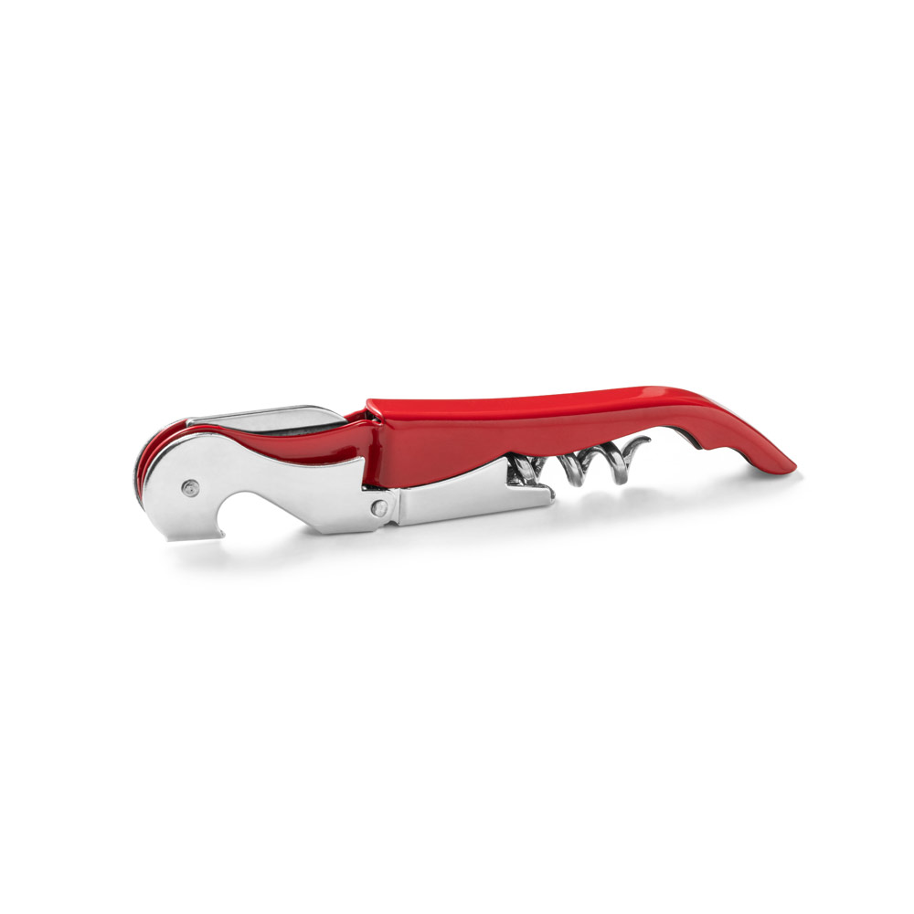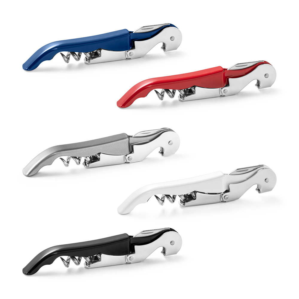 Saca-rolhas em metal e PP com abre-cápsulas, canivete de escanção e espiral em aço inox.