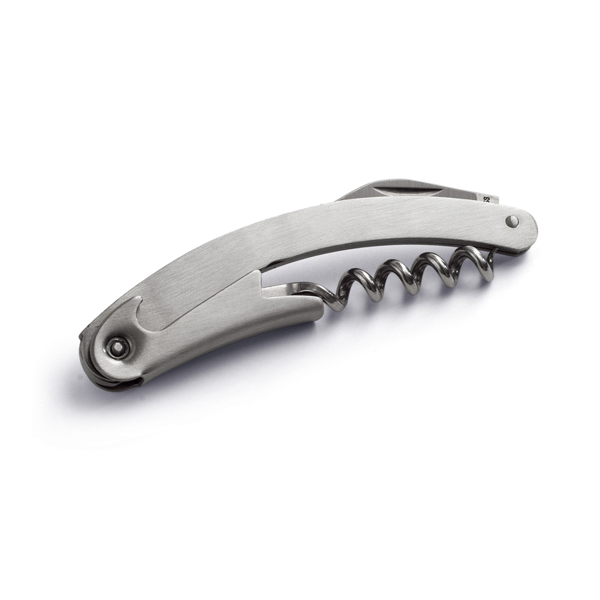 Saca-rolhas em metal com abre-cápsulas e canivete de escanção.