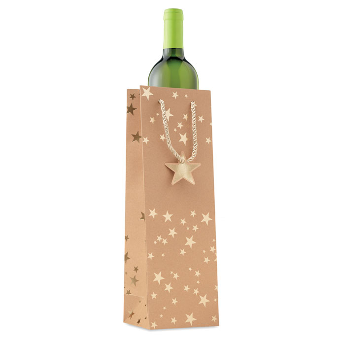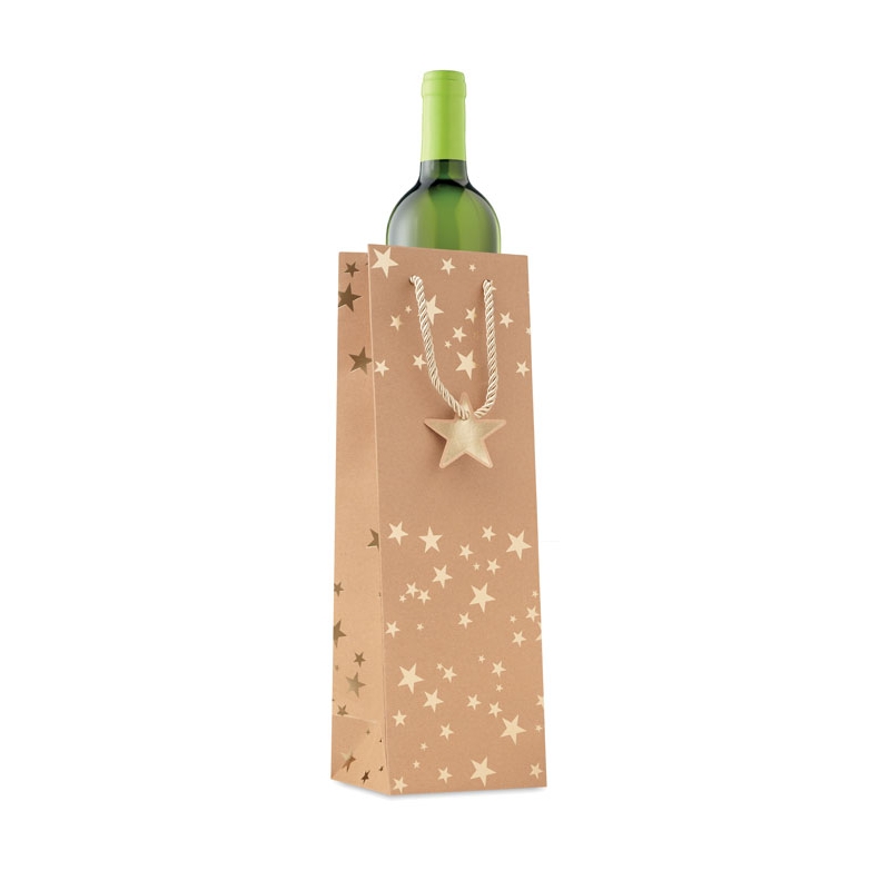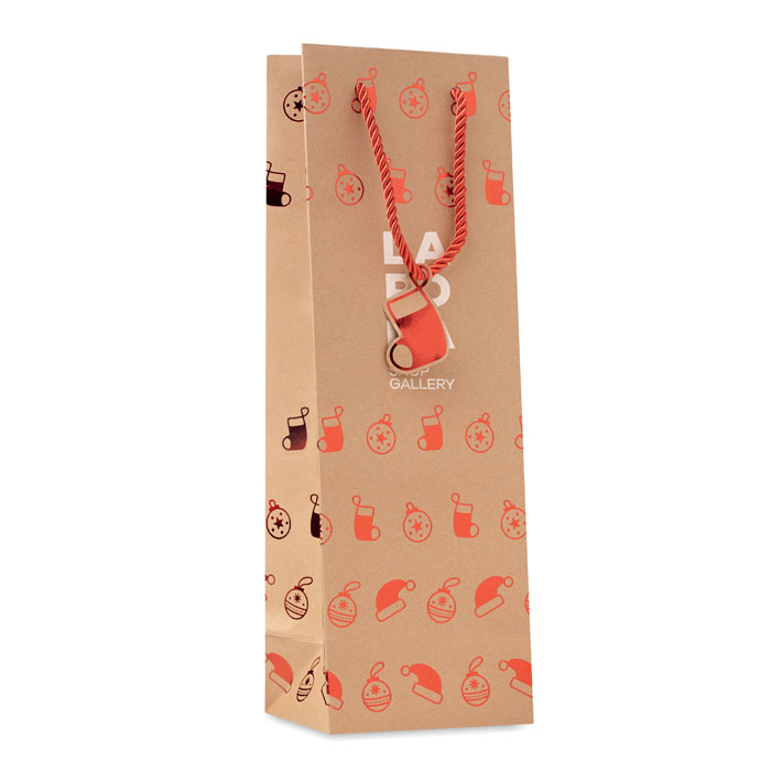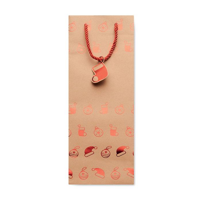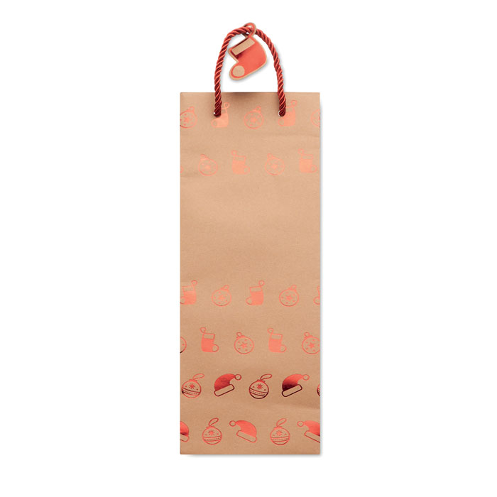 Saco de Natal em papel kraft para vinho com etiqueta (250 gr/m²) incluída.