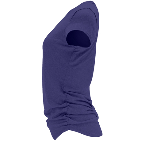 Com gola redonda, corte cintado e laterais elásticos enrugados para melhor adaptação ao corpo.