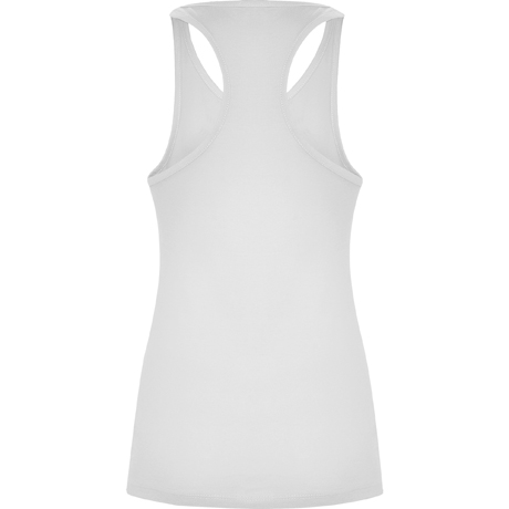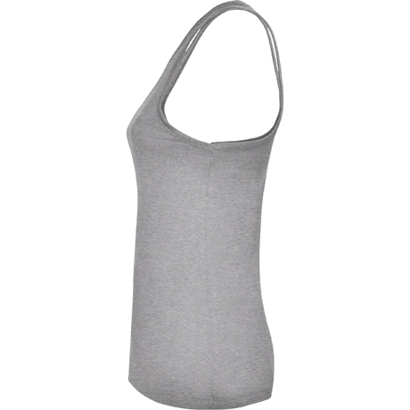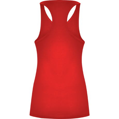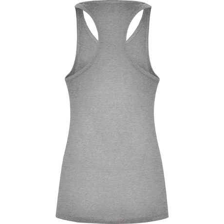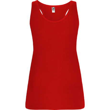 Com cavas e decote debruado, largo e enrolado. Costas estilo nadadora e costuras laterais.