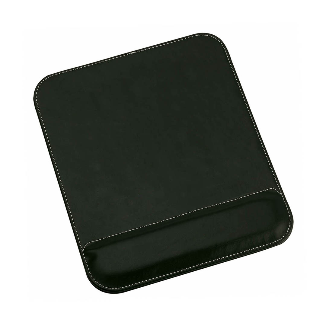 Tapete de rato em polipele com base antiderrapante e descanso para o pulso acolchoado.