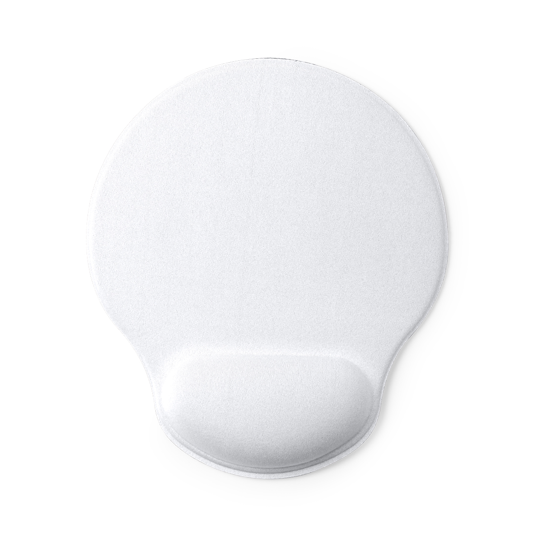 Tapete de rato em poliéster com base antiderrapante e repouso para o pulso acolchoado.
